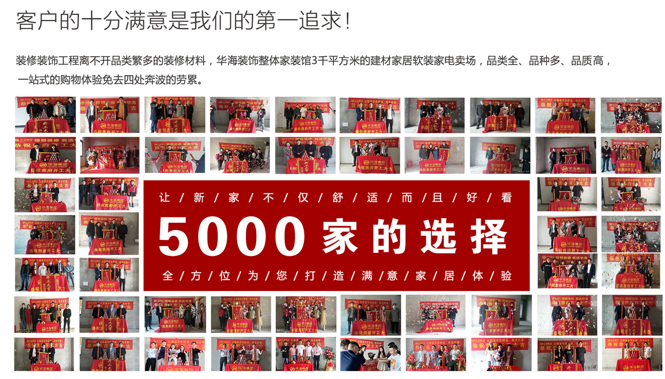 通過與不同客戶溝通,理解和服務,使華海裝飾海星店的承諾不是流于書面上的宣傳,也不是益于言辭的空頭表白,而是真誠地、用心地、竭盡全力地、腳踏實地的為客戶服務。規范化的工作流程,嚴謹的工作態度,簡約時尚的設計理念,嚴格的施工質量管理,推出合理的陽光報價,善始善終的良好的服務態度,為業主考慮在細節之處。正得到所有業主的信賴!