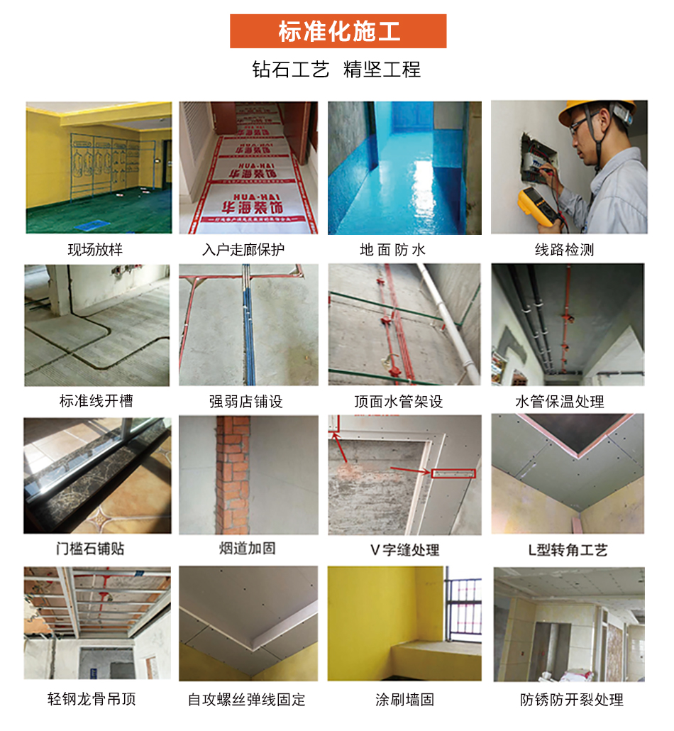 華海裝飾海星店一直堅持“認真生活,快樂工作”的工作理念,在同行中樹立了典范。首先華海裝飾海星店推出“鉆石工藝”工程:電工施工、木工施工、瓦工施工、油漆施工、形象工程等120項工程標準。竭力打造“誠信華海”。